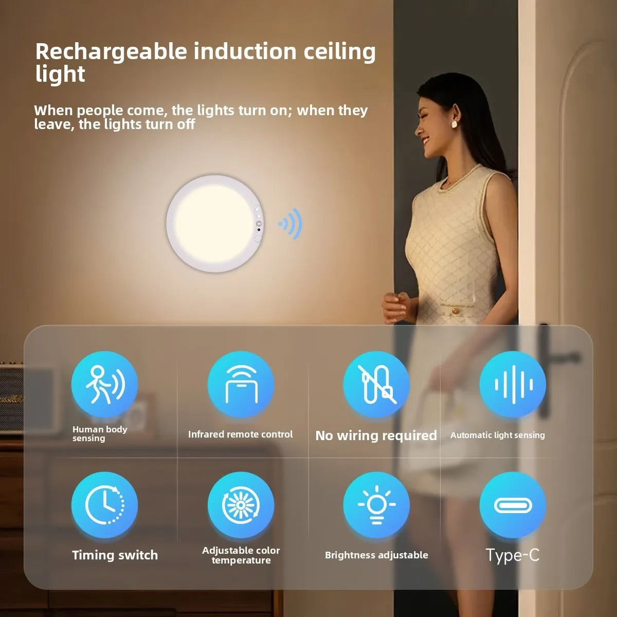 Our advanced human body induction technology detects movement within a 3-5 meter range. It also features light sensitivity, meaning it will not waste energy by turning on when the room is already bright. It is the perfect hands-free solution for hallways, closets, or any dark corner.